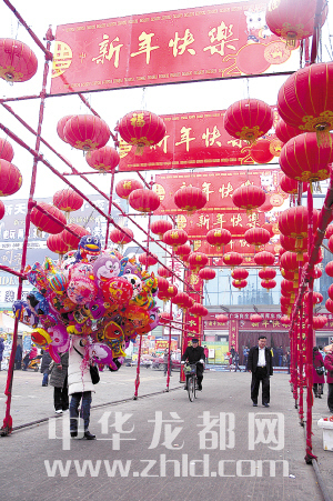 ??? 我市群眾采取不同形式歡慶牛年春節(jié)的到來,到處洋溢著濃濃的新春氣息。圖為:商家盛裝迎新春。(記者 李寒 陳衛(wèi)東 攝)