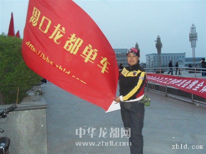 4月18日傍晚,一名網(wǎng)友把“周口龍都單車”旗幟插在五一廣場,為祈福活動布置場地。