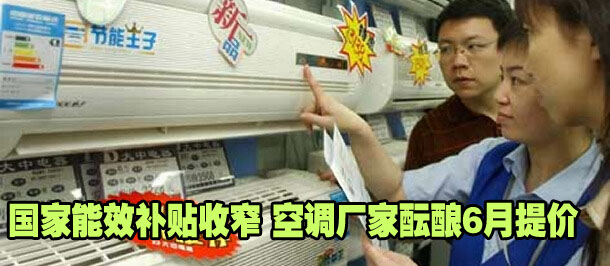 ?近日,賣場人士對記者透露:由于國家能效補(bǔ)貼收窄,從6月1日起節(jié)能空調(diào)補(bǔ)貼將從現(xiàn)在的300~850元下調(diào)至250元以下,因此空調(diào)廠家普遍醞釀在6月初提價,高能效空調(diào)預(yù)計提價在200~600元左右。因此今年5月份將是近年購買空調(diào)的“最劃算”時期。