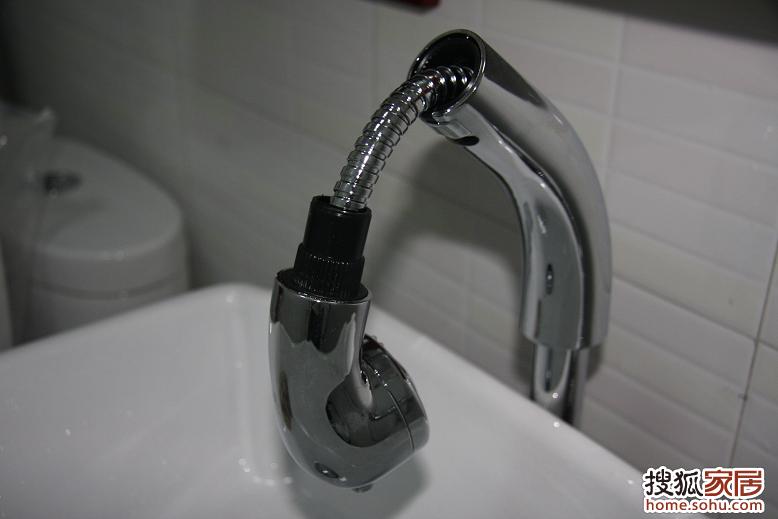 水龍頭特寫。是一款抽拉式的水龍頭,方便今后洗頭發(fā)。