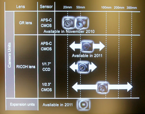 繼索尼E口鏡頭之后,德國Photoscala網(wǎng)站也公布了理光GXR系統(tǒng)的發(fā)展路線圖。其中的亮點(diǎn)是在2011年理光將推出多款組件,但路線圖中并未說明這些組件支持何種接口。在此前的傳聞中已經(jīng)提到了M4/3模塊,而徠卡M口和哈蘇口的原型機(jī)甚至也已流傳了數(shù)月。我們現(xiàn)在只能等待理光在2011年揭曉一切謎底了。