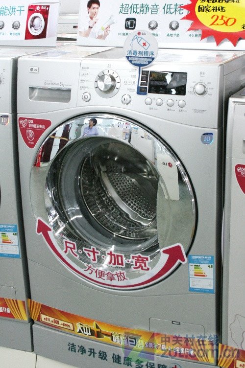 這款LG滾筒洗衣機加大了入口的尺寸,更方便用戶取拿衣服,另外還采用了DD變頻直驅(qū)電機,從根本上解決了洗衣機轉(zhuǎn)動和脫水時的噪音問題。
