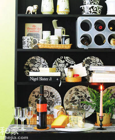 通過往深色木漆柜里擺放黑白花紋的餐盤和小飾品,你可以在家居生活中營造更多黑白主題的裝飾。這樣的布置不僅使你的廚房或餐廳變得吸引眼球,更能讓拿取餐具變得便捷。