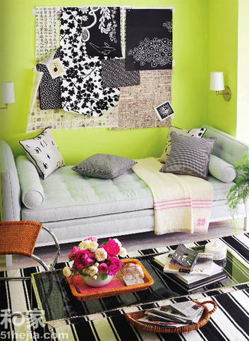 以青草綠色為背景的家居環(huán)境,在黑色與白色的挑撥下洋溢著年輕、活力的氣息。