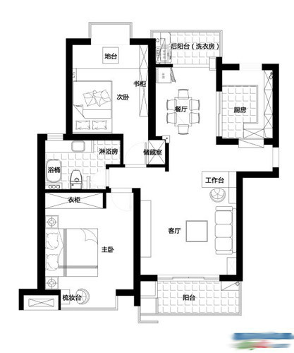 90平米,套內面積70,戶型也算足夠方正,南北通透,主臥和客廳朝南,應該可以算90平米戶型中的樣板戶型了,但結合實際,還是有些許缺陷: