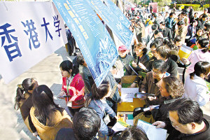 資料圖片:香港幾所大學(xué)的招生咨詢會(huì)現(xiàn)場(chǎng)格外搶眼。(CFP供圖)