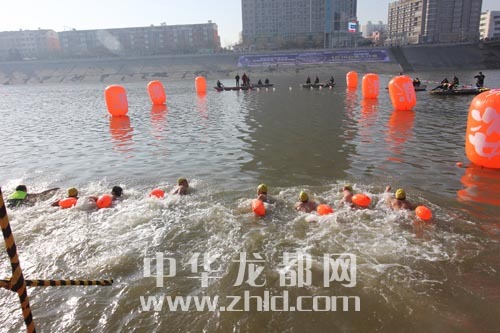 ????昨天上午,來自周口各縣市區(qū)及漯河、鄭州的300余名冬泳愛好者齊聚沙潁河,在中州大道橋附近河段展開了一場邀請賽。