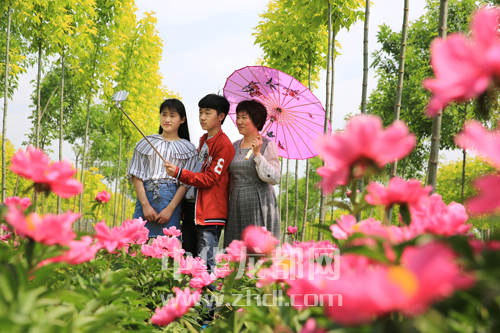????“五一”假期,扶溝縣大新鎮(zhèn)300畝芍藥花開(kāi)正艷,吸引了不少附近群眾前來(lái)觀賞、游玩。圖為游人正在芍藥花間拍照留念。張力友 攝