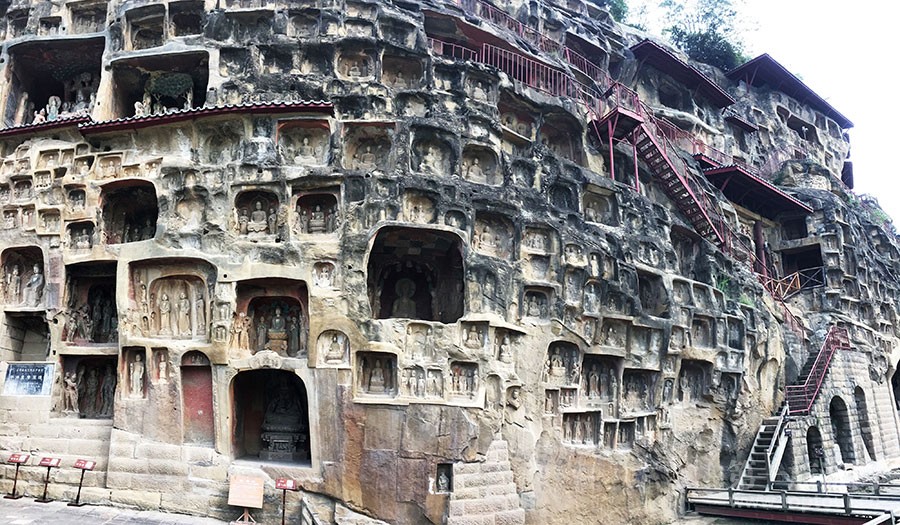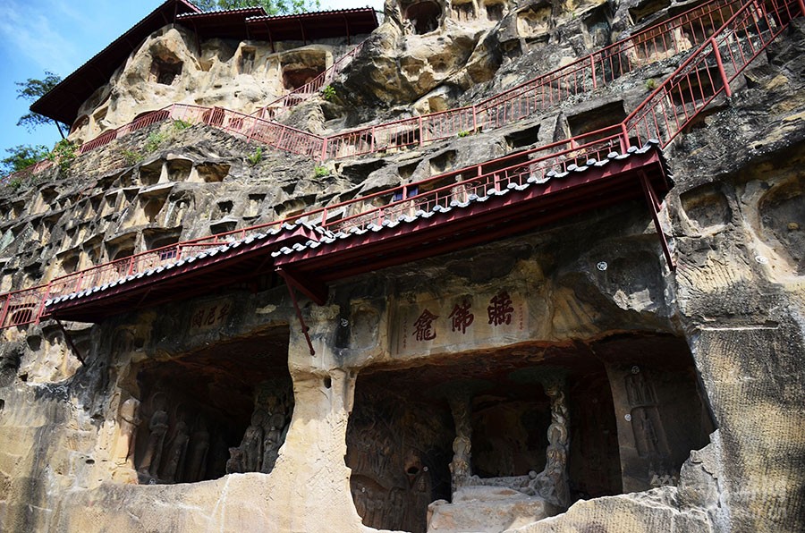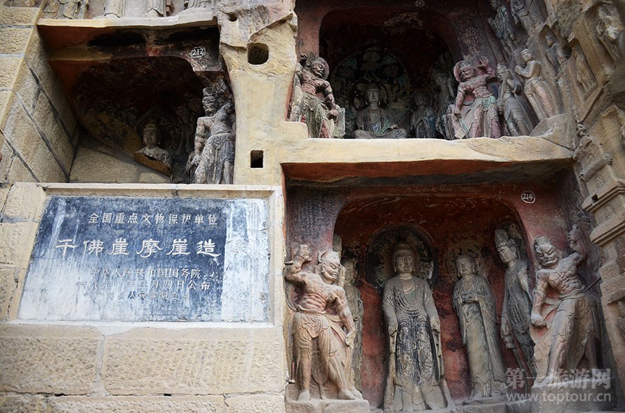 ????廣元千佛崖是四川境內(nèi)規(guī)模最大的石窟群,摩崖造像始于北魏時(shí)期,歷經(jīng)了近1500年,在高45米,南北長(zhǎng)200多米的峭壁上,布滿了造像龕窟,重重疊疊13層,密如蜂房。