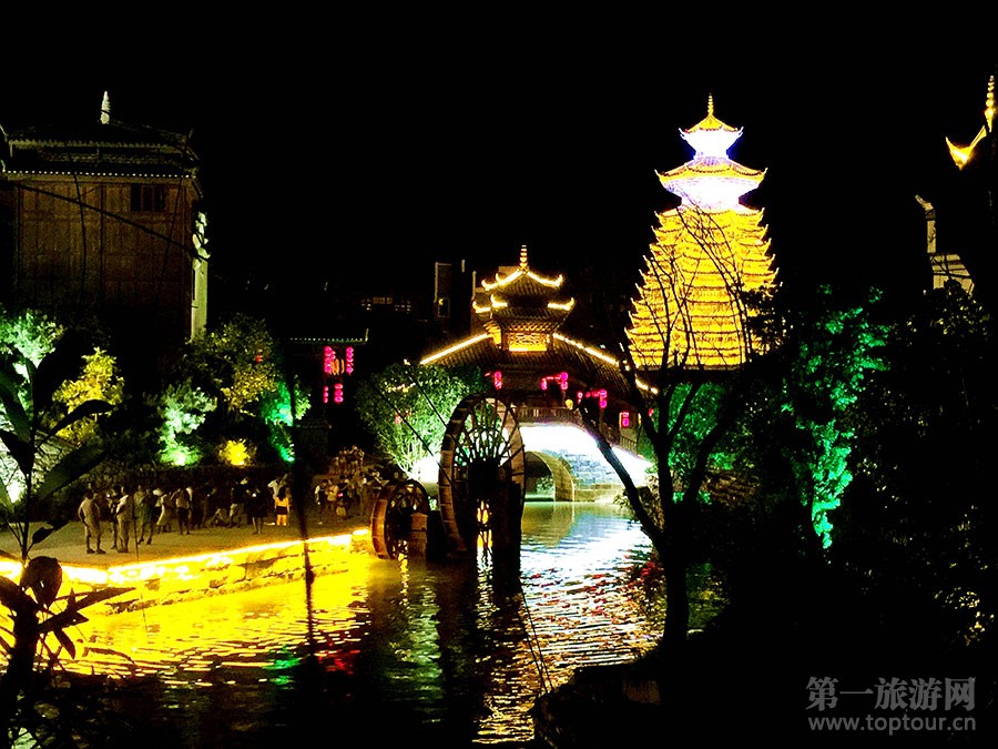 ????下司古鎮(zhèn)是貴州省黔東南自治州麻江縣與凱里市襟水相鄰的一個古鎮(zhèn)。嘉慶13年(公元1808年),下司被辟為商埠,到民國時發(fā)展為鬧市,有水陸碼頭,是黔東南重要物資集散地。當時鎮(zhèn)上商賈云集,馬幫成群結(jié)隊,商號、貨棧、會館、餐館遍布街巷,徹夜營業(yè),被譽為“小上?!薄,F(xiàn)在兩岸大街還保留著清乾隆四十四年(公元1779年)修建的條石鋪砌成扇形的30余米的石級大碼頭和小碼頭,以及禹王宮,觀音閣等古寺,古殿宇遺址,古居民,古巷道。位于清江村觀音山半山腰上依山而建的觀音閣至今保存完好,香火鼎盛。這里有“清水江上的明珠”之美稱。這里山清水秀,人杰地靈,是中國紅蒜之鄉(xiāng),鋅硒米之鄉(xiāng),世界名犬下司犬之鄉(xiāng),世界優(yōu)秀、亞洲最好的皮劃艇激流回旋基地就在這里。每年農(nóng)歷七月中旬,這里的人們沿襲傳統(tǒng)舉行龍舟大賽,斗牛大賽,車流人流,摩肩接踵,熱鬧非凡。此外,這里還有眾多的歷史人文古跡,辟有桃園島、月亮島、紫薇島等系列旅游度假場所,堪稱下司絕藝的“酸湯魚”、“草燒狗”廚藝更是名聲遠揚,深受游客喜愛。每當周末假日,凱里、都勻、貴陽等處的旅客呼朋引伴舉家前來,漂流戲水、訪古探幽之后,悠悠然面水臨窗,點上一兩樣佳肴,大快朵頤,盡興享受這忙碌人生難得的清閑。入夜,這里更是燈火璀璨,流光溢彩,一派不夜城的景象。高翃凌/攝