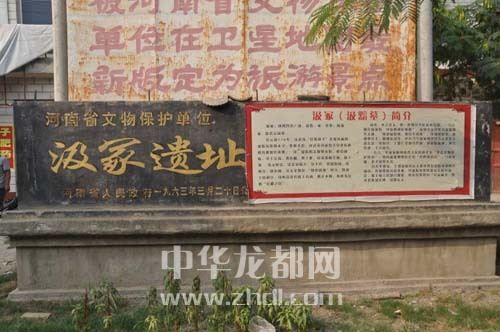 ????位于鄲城縣汲冢鎮(zhèn)張莊村北,南臨淮(陽)鄲(城)公路。據(jù)傳西漢時(shí)期曾任淮陽太守的汲黯死后葬此,故名汲冢。遺址現(xiàn)存面積約200平方米,內(nèi)含仰韶、大汶口、龍山和商周文化遺存。遺物中仰韶、大汶口文化陶片較少,僅見夾砂紅陶片、鴨嘴形鼎足和陶觚等。龍山文化陶片較多,以泥質(zhì)和夾砂灰陶為主,也有少量褐、黑陶,飾籃紋、方格紋和繩紋。器形有平底盆、罐、罐形鼎、甗、碗、杯等。商周文化的陶器有大口尊、盆、鬲和罐等。此外還發(fā)現(xiàn)有漢代遺物。????