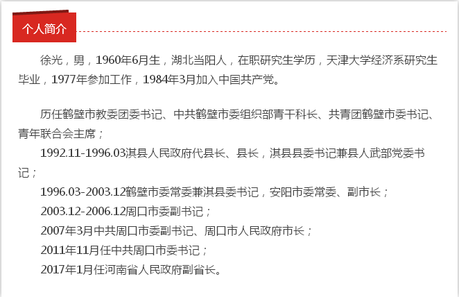 ????????1月20日上午11時(shí),市委書記徐光在河南省十二屆人大七次會(huì)議第三次大會(huì)上當(dāng)選為副省長。