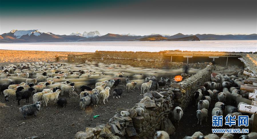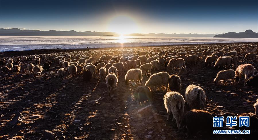 ????普姆雍措湖邊的羊群。