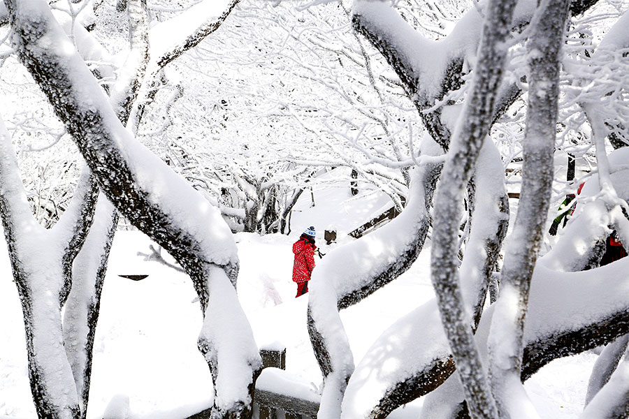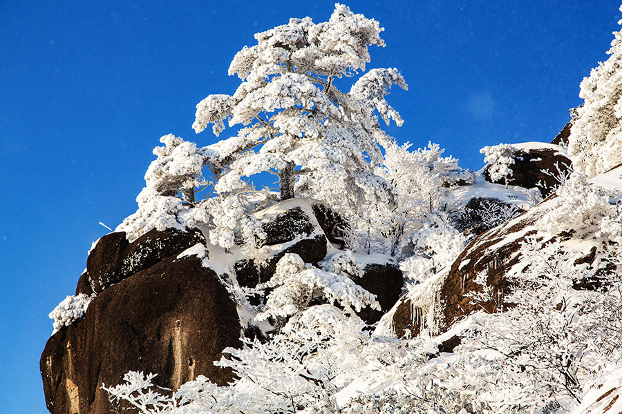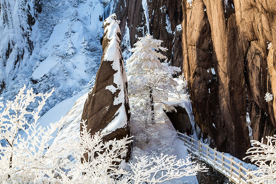 ????黃山以奇松、怪石、云海、溫泉、冬雪著稱于世。雪后黃山,山上、樹上、石階上睡滿了雪花,譽(yù)為“人間仙境”的黃山在雪的襯托下,處處銀裝素裹、端莊輕靈;玉樹瓊枝,滿目瓊樓玉宇。(方立華)