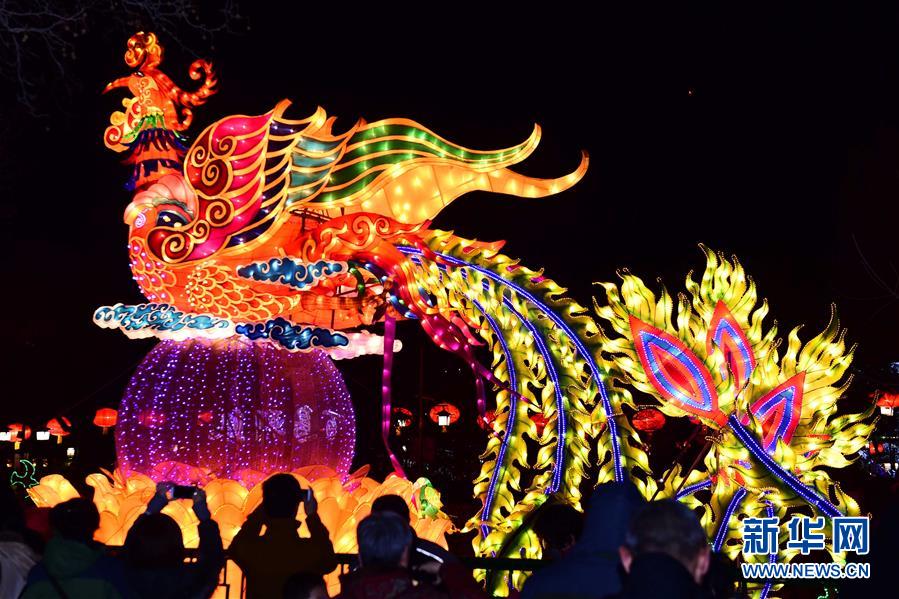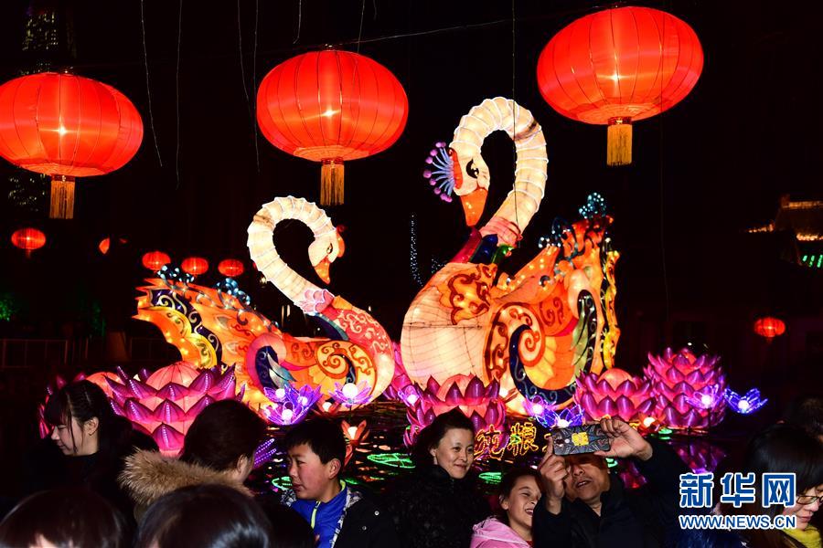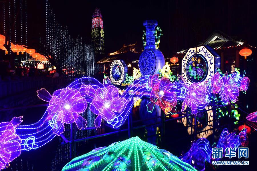 ????濟南趵突泉公園內(nèi)的迎春花燈(2月8日攝)。