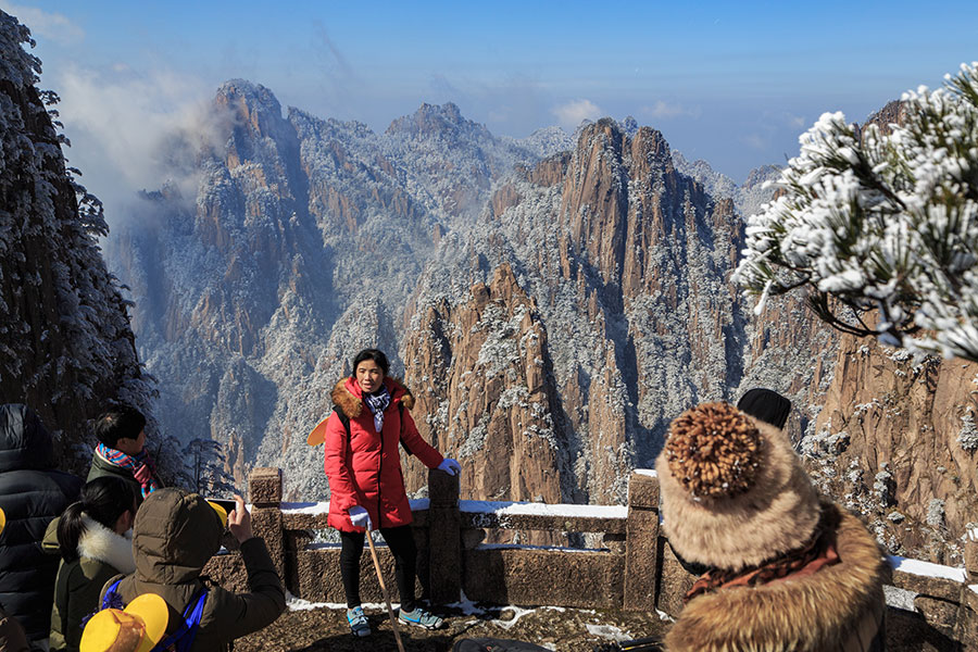 ????“處處路通琉璃界,時時身在水晶宮”。春雪紛飛的黃山,美麗壯觀。挺拔的松樹上落上了純白的雪花,在陽光下照射下,銀光閃閃。最讓人期待的是雪后云海,山峰間,叢林中,云海翻滾,猶如驚濤駭浪般洶涌。方立華/攝