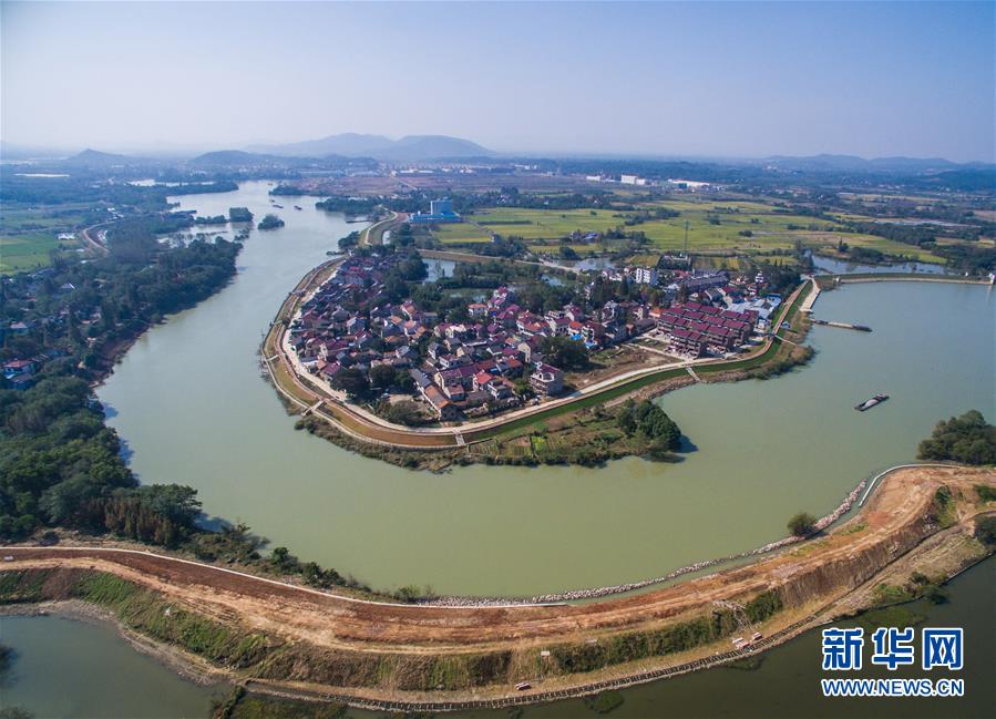 ????俯瞰整治完成的浙江省安吉縣西苕溪荊灣段,西苕溪水系最后匯入太湖(2016年11月3日攝)。