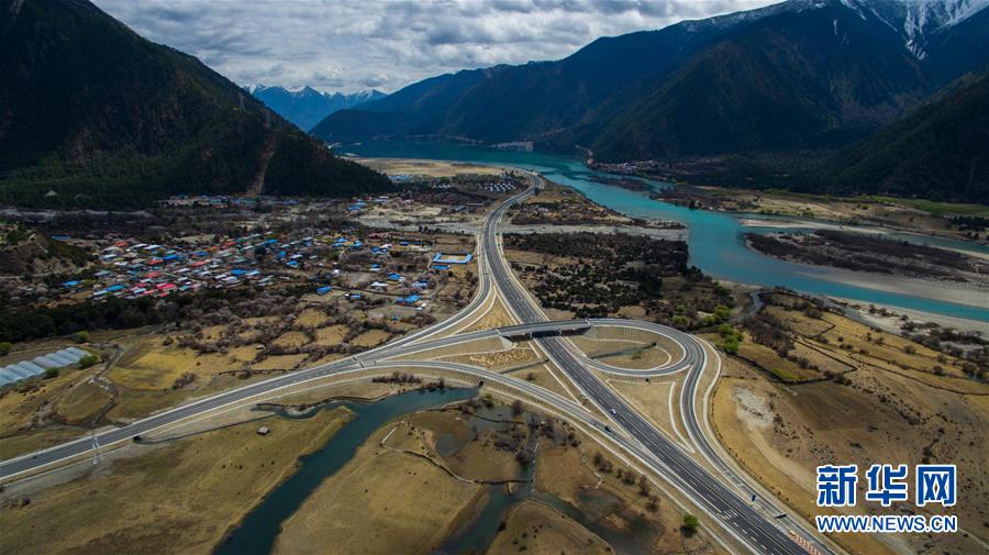 ????俯瞰西藏林芝境內(nèi)的拉林高等級(jí)公路(2016年4月4日攝)。