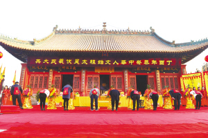 ????本報(bào)訊 2月27日,農(nóng)歷“二月二”。當(dāng)天上午,淮陽(yáng)太昊陵龍旗飄揚(yáng),香燭縈繞,由當(dāng)?shù)孛耖g、工商界組織的“丁酉年全球華人恭祭中華人文始祖太昊伏羲典禮”在這里隆重舉行(圖一、圖二)。同時(shí),來(lái)自13個(gè)省的“國(guó)字號(hào)”非遺項(xiàng)目展演活動(dòng)(圖三、圖四、圖五、圖六、圖七)也在羲皇文化廣場(chǎng)拉開帷幕。一年一度的淮陽(yáng)傳統(tǒng)古廟會(huì),又一次在這個(gè)春天如約而至。