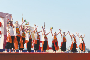 ????“二月二”當(dāng)天,除了恭祭伏羲典禮外,第八屆中原古韻——中國(guó)(淮陽(yáng))非遺展演依然是今年朝祖會(huì)期間最大的亮點(diǎn)。周口晚報(bào)記者在展演現(xiàn)場(chǎng)看到,浙江黃沙獅子、云南彝族跳菜、貴州侗族大歌、遼寧海城高蹺、內(nèi)蒙古馬頭琴合奏……一個(gè)個(gè)獨(dú)具地方特色、盡顯古風(fēng)神韻的世界級(jí)、國(guó)字號(hào)非遺項(xiàng)目的閃亮登場(chǎng),令人大飽眼福。