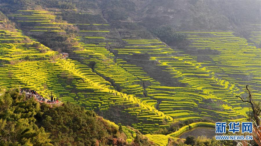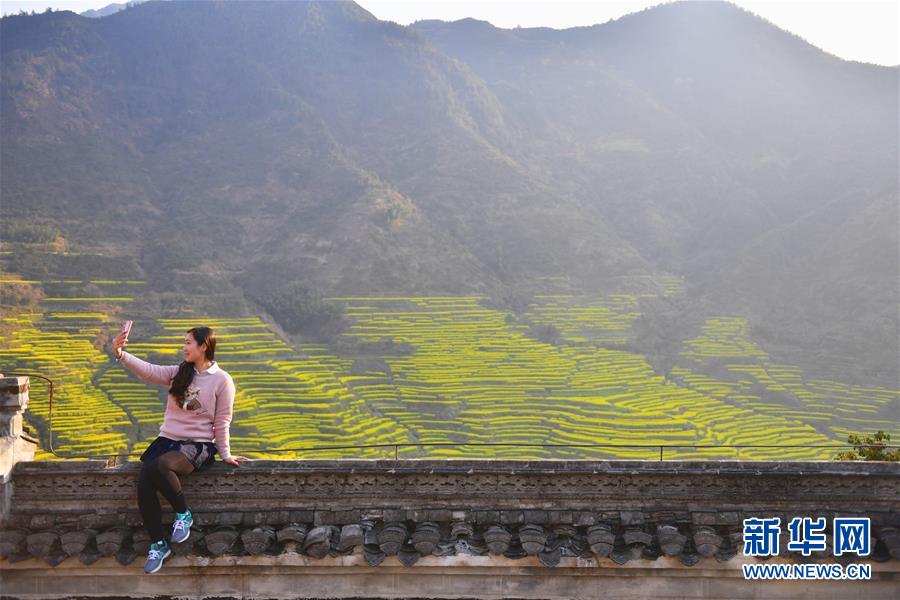 ????近日,江西省婺源縣鄉(xiāng)間田野油菜花競相開放,與粉墻黛瓦的徽派民居相映,構(gòu)成一幅幅美麗的春色畫卷,吸引大量游客游覽觀賞。