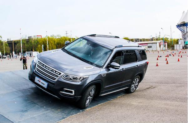 第三個項目是緊急避讓,體驗車輛抓地性;接下來的側(cè)面斜坡項目長安CS95順利通過,車身并未有異響。