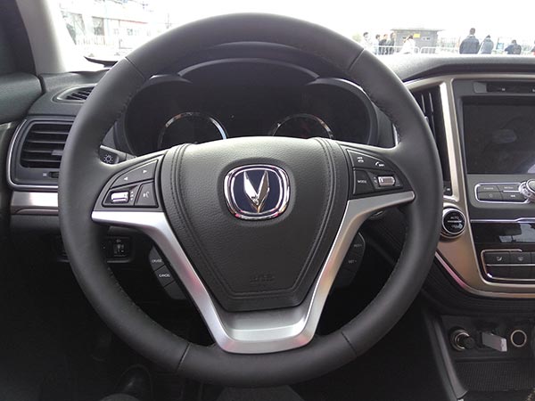 內(nèi)飾整體的造型設(shè)計凹凸有致,層次清晰。三幅式多功能方向盤尺寸大小合適,軟性材質(zhì)的包裹也讓車內(nèi)做工顯得比較細膩。