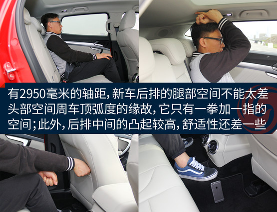 體驗(yàn)者身高175厘米,前排座椅降到最低的時(shí)候頭部還有比較充足的余量,完全不會感覺到壓抑;不過后排頭部就不太行了,頭部距離車頂非常接近,要是身高再高一些的乘客坐進(jìn)后排,已經(jīng)基本上快頂?shù)筋^了。儲物空間中規(guī)中矩,基本上沒有太多讓人驚喜的地方。扶手箱的空間不小,高度也合適,可以放些雜物。