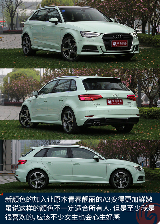 鳳凰汽車·搶先試駕?從某種程度上來說,我得承認(rèn)我是一個(gè)外貌協(xié)會(huì),或者說必須要有所取舍的時(shí)候,好不好看一定會(huì)成為先決條件。你也許覺得我有些膚淺,說好的內(nèi)在美呢?可是別光說我,捫心自問,你敢說自己不是外貌協(xié)會(huì)嗎?所以在一切美麗的事物面前,喜愛之情都是難以控制的,比如當(dāng)我第一次看到喀納斯綠的新款奧迪A3?Sportback。