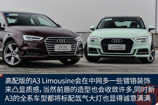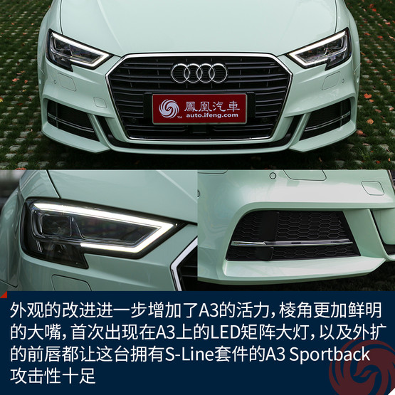 新顏色的加入讓原本青春靚麗的A3變得更加鮮嫩,雖說這樣的顏色不一定適合所有人,但是至少我是很喜歡的,應(yīng)該不少女生也會(huì)心生好感。而外觀的改進(jìn)進(jìn)一步增加了A3的活力,棱角更加鮮明的大嘴,首次出現(xiàn)在A3上的LED矩陣大燈,以及外擴(kuò)的前唇都讓這臺(tái)擁有S-Line套件的A3 Sportback攻擊性十足,同時(shí)全系都將標(biāo)配氙氣大燈也是誠意滿滿。而高配置的A3 Limousine會(huì)在中網(wǎng)多一些鍍鉻裝飾來凸顯質(zhì)感,當(dāng)然前唇的造型也會(huì)收斂許多。
