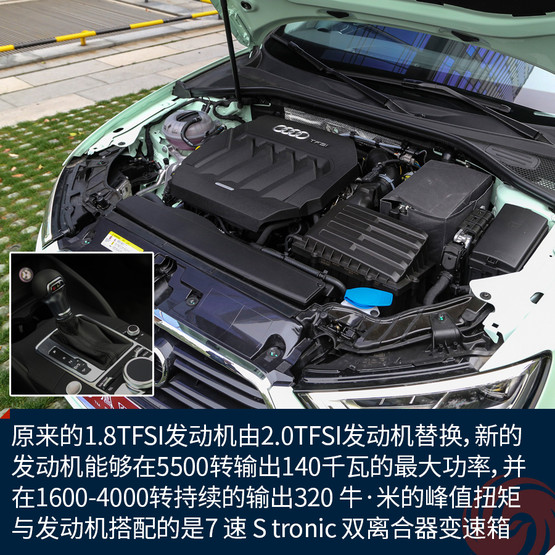 動(dòng)力的改變也許是此次另一個(gè)升級(jí)的重點(diǎn),除了1.4TFSI發(fā)動(dòng)機(jī),原來的1.8TFSI發(fā)動(dòng)機(jī)將由2.0TFSI發(fā)動(dòng)機(jī)替換,新的發(fā)動(dòng)機(jī)能夠在5500轉(zhuǎn)輸出最大功率為140千瓦,并在1600-4000轉(zhuǎn)持續(xù)的輸出320 牛·米的峰值扭矩。與兩臺(tái)發(fā)動(dòng)機(jī)搭配的7 速 S tronic 雙離合器變速箱。憑借動(dòng)力的優(yōu)勢,新A3 40TFSI車型的百公里加速時(shí)間縮短了0.1秒,但是油耗會(huì)相應(yīng)的有所減少。