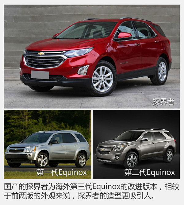 探界者其實(shí)并非科帕奇的換代車(chē)型,而是完完全全的一款全新車(chē)型,國(guó)產(chǎn)探界者也并不是第一次出現(xiàn)在世人面前;探界者早在北美市場(chǎng)供應(yīng),名為Equinox的它是通用汽車(chē)在北美市場(chǎng)最受歡迎的車(chē)型之一。這次引入國(guó)內(nèi)的探界者已經(jīng)是它的第三代車(chē)型,而第二代在整個(gè)北美市場(chǎng)位列全部車(chē)型銷(xiāo)量榜的第15位,可見(jiàn)其可靠的實(shí)用性和較高的性價(jià)比受到了多大的認(rèn)可。