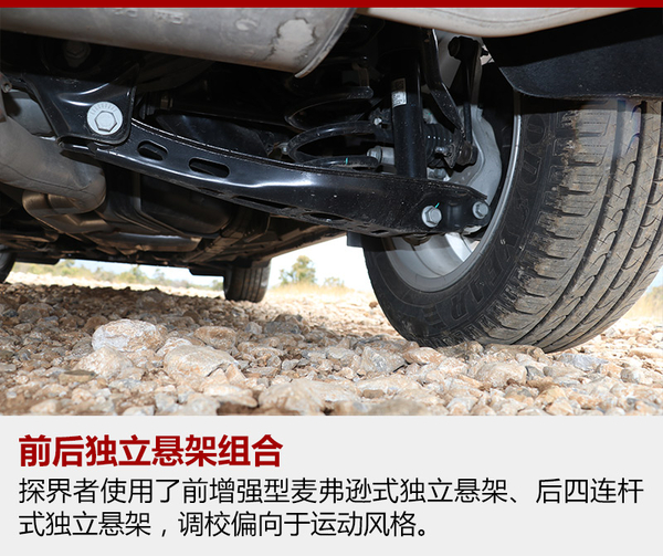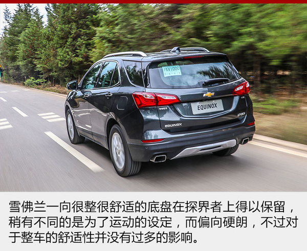 探界者的底盤(pán)受到雪佛蘭運(yùn)動(dòng)傾向的影響,被調(diào)校的有些偏硬,這樣對(duì)于車(chē)身側(cè)傾的抑制就非常到位,面對(duì)路面上連續(xù)的起伏,緊致的懸架也帶來(lái)很強(qiáng)的整體感。但是當(dāng)面對(duì)較大的顛簸或者減速帶一類(lèi)的時(shí)候,車(chē)身就會(huì)產(chǎn)生彈跳的感覺(jué),而且懸架的回彈稍有延遲,總有一次小幅度的二次彈跳,稍稍影響了舒適性。
