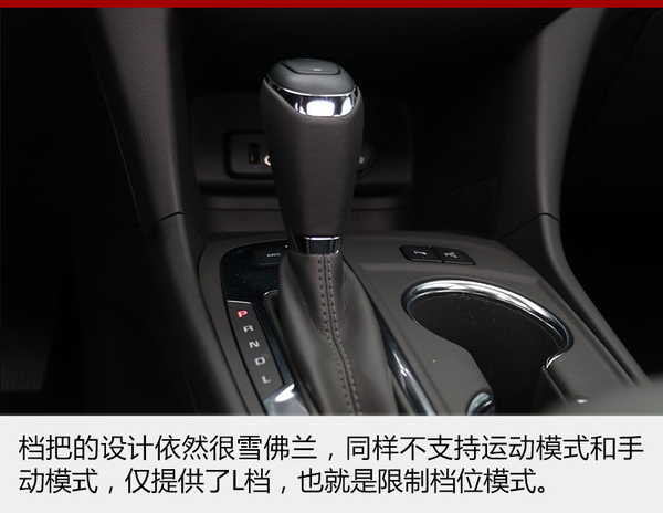 有一點(diǎn)我不是很明白,雪佛蘭最新的設(shè)計(jì)理念已經(jīng)開(kāi)始向運(yùn)動(dòng)發(fā)展,但是它旗下的車(chē)型都不帶有運(yùn)動(dòng)模式和手動(dòng)換擋模式,僅僅是提供了L檔,也就是所謂的限位檔,通過(guò)檔把上方的加減按鍵可以手動(dòng)使變速箱限制在相當(dāng)?shù)臋n位上,D檔模式下此按鍵無(wú)效。