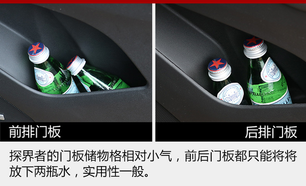 探界者作為一臺(tái)中型SUV在儲(chǔ)物空間的表現(xiàn)其實(shí)有些平庸,不算多的儲(chǔ)物格除了扶手箱以外基本沒(méi)有亮點(diǎn),而且門(mén)板的儲(chǔ)物格也比較不實(shí)用;后備箱的空間倒是值得肯定,無(wú)論是座椅放倒后的平整和可擴(kuò)展性,還是蓋板下方的小儲(chǔ)物格,都很靠譜。