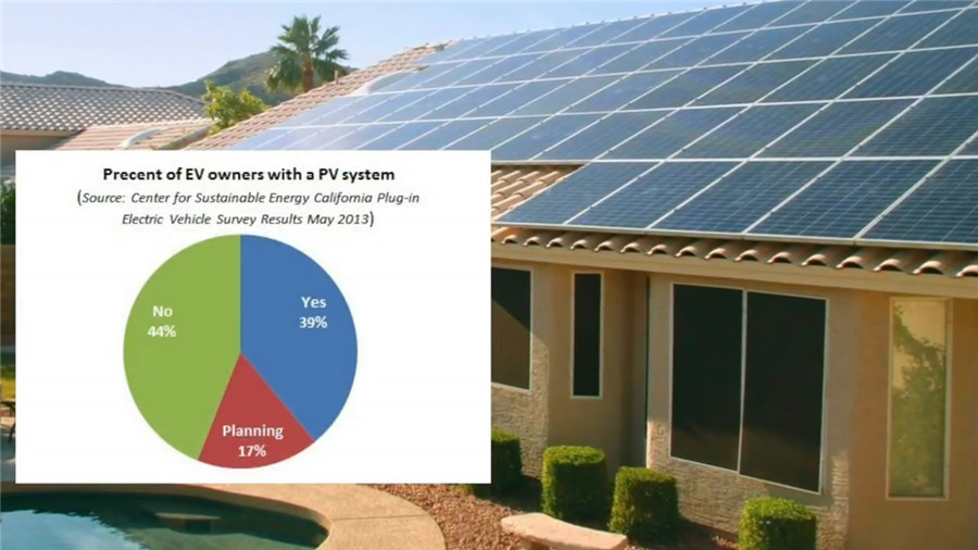 ????????一直以來爭議的問題,盡管電動車在行駛時確實沒有排放,但電能本身是二次能源,生產(chǎn)電能的過程中同樣會產(chǎn)生排放,而且這排放比起生產(chǎn)汽油更嚴(yán)重。視頻中給出了另一個數(shù)據(jù),加利福尼亞使用電動車或者插電式混合動力車的用戶中,家里有太陽能發(fā)電以及類似清潔能源系統(tǒng)的占到了39%的比例,而還有17%的用戶有計劃安裝類似發(fā)電系統(tǒng)。