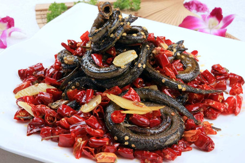 1、選料考究,做工精細(xì)。鱔魚必須選擇天然生黃鱔,顏色呈黑褐色,辣椒以紅色為宜。做法要經(jīng)過泡、燙、炸、煸炒等工序。