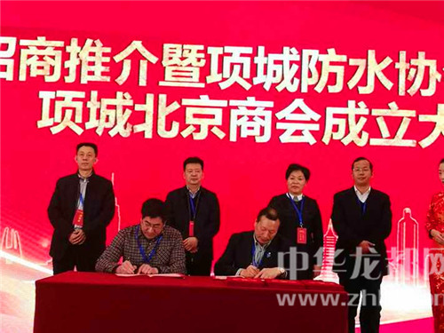 劉體峰、王玉玲、張曉在會上分別為新當(dāng)選的項(xiàng)城防水協(xié)會北京辦事處、項(xiàng)城北京商會的相關(guān)負(fù)責(zé)同志頒發(fā)證書及匾牌,并見證了新成立的辦事處、商會與部分知名企業(yè)的合作簽字儀式。