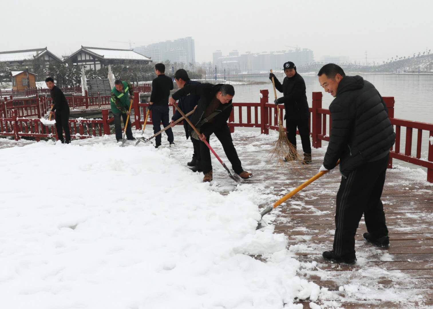 經(jīng)過兩場(chǎng)大雪的洗禮,空氣格外清新,但鹿邑上清湖公園內(nèi)積雪嚴(yán)重,且已結(jié)冰,給市民游園帶來了諸多不便和隱患。從早晨到下午4點(diǎn)半,鹿邑市政園林中心的干部職工和道德公益志愿者在上清湖集合后,投入鏟雪掃雪行動(dòng),經(jīng)過一天的緊張清掃,上清湖湖面棧道和園內(nèi)公路上的積雪清掃一遍。道德公益志愿者鐘華在微信群里提出建議后,有十幾位志愿者報(bào)名參加上清湖義務(wù)掃雪活動(dòng)。