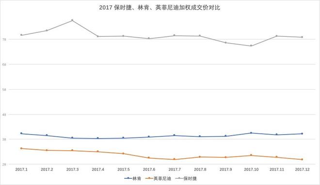 保時(shí)捷、林肯、英菲尼迪銷量在5-10萬(wàn)之間為第三陣營(yíng),保時(shí)捷品牌比較節(jié)制,對(duì)銷量一直沒有過(guò)多追求,銷售方式與其他豪華品牌不同,多以訂單方式銷售,經(jīng)銷商利潤(rùn)連續(xù)兩年行業(yè)中為最好;全進(jìn)口車型為主的林肯成交價(jià)在39萬(wàn)上下,今年銷量增速最快,價(jià)格走勢(shì)也非常好,但產(chǎn)品進(jìn)入銷售中期,與其他品牌新款車型對(duì)比不占優(yōu)勢(shì);英菲尼迪今年沒有太多走量新車,國(guó)產(chǎn)車型也面臨改款,成交價(jià)在30萬(wàn)上下,隨新款QX50上市,Q50L改款,銷量和成交價(jià)有望走高。