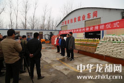 中華龍都網(wǎng)訊 (周口報業(yè)全媒體記者張勁松 通訊員 蘇千) 新年送溫暖,扶貧獻愛心。1月28日下午,東新區(qū)許灣鄉(xiāng)創(chuàng)興裝飾公司暨扶貧車間慰問貧困戶捐贈儀式在許灣鄉(xiāng)精準扶貧就業(yè)車間隆重舉行。當日,該公司為許灣鄉(xiāng)貧困戶捐贈了價值6萬余元的米、面、油等扶貧物資。許灣鄉(xiāng)黨委書記李培華,東新區(qū)紀檢監(jiān)察室副主任、許灣鄉(xiāng)于莊行政村第一書記高賓及企業(yè)相關負責人出席儀式。