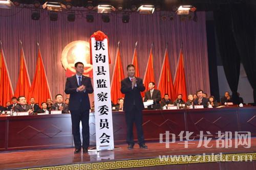 盧偉、常青共同為扶溝縣監(jiān)察委員會揭牌,標志著扶溝縣監(jiān)察委員會的正式成立。