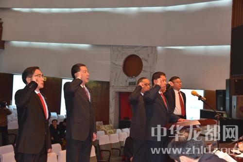白建偉、王勝強、翟勝遠、宋玉民、徐永豪在王銀河領(lǐng)誓下公開向憲法作就職宣誓。