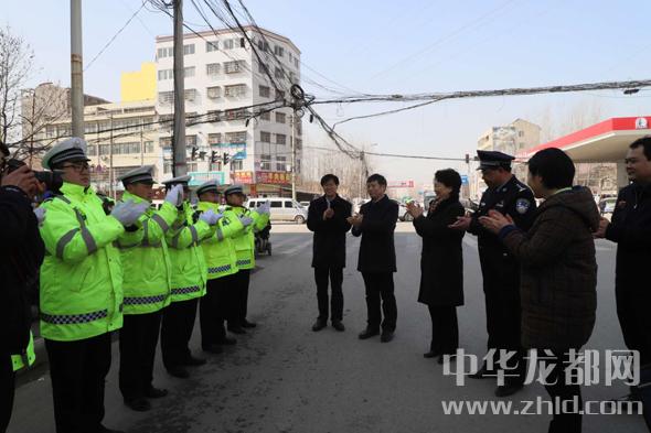 一路慰問一路播撒黨的溫暖。在鄲城縣城科技大道與人民路口,趙素萍一行專門下車慰問了一線交警?!袄洳焕洌啃』镒?。這衣服暖和不?”趙素萍用手摸了摸一位交警的值勤服問?!安焕洌@是俺縣里才配發(fā)的保暖服,防雪防風(fēng)防雨。再說了,省領(lǐng)導(dǎo)來慰問,俺心里更暖和?!苯痪臋C靈回答,把大家逗得哈哈大笑。趙素萍說:“你們不畏嚴寒的辛勤付出保障了城市的暢通,我代表省委、省政府向全縣民警同志們致以節(jié)日的問候,并通過你們向你們的家人表示節(jié)日的祝福,祝愿大家新春愉快,闔家幸福,身體健康。”