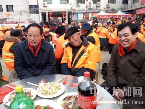 中華龍都網(wǎng)訊(周口報業(yè)全媒體記者 馬治衛(wèi))2月14日上午,太康縣“溫暖環(huán)衛(wèi)工團(tuán)團(tuán)圓圓過大年”大型公益活動隆重舉行。市政府副市長、市黨外知識分子聯(lián)誼會會長張廣東應(yīng)邀出席并與環(huán)衛(wèi)工一起共進(jìn)午餐。