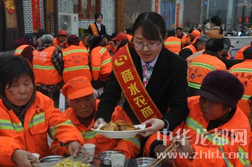 春節(jié)以來,城區(qū)人口增加,環(huán)衛(wèi)工人工作量大增,許多工人吃不上應(yīng)時熱飯。為感謝環(huán)衛(wèi)工人的辛苦工作,愛心企業(yè)商水農(nóng)商行精心為當日值班的環(huán)衛(wèi)工作提供了免費午餐,并為每位環(huán)衛(wèi)工作提供了一份精美禮品?!吧显?!”菜肴上夠十個,農(nóng)商行工作人員端上來大盆元宵。“累了一上午,能在這和大家一道過元宵佳節(jié),真是太感謝農(nóng)商行的領(lǐng)導(dǎo)!”65歲的環(huán)衛(wèi)工人趙明亮吃著甜滋滋的元宵高興地說。