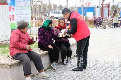 細心的志愿者們還為健身、散步、游玩的市民準備了開水和杯子,為他們驅走寒意、溫暖雙手、滋潤心田?!鞍澈涸诩乙矝]想著給我倒杯水喝啊,恁還大老遠給我送來!”接過志愿者手中的開水,一位老人十分激動。