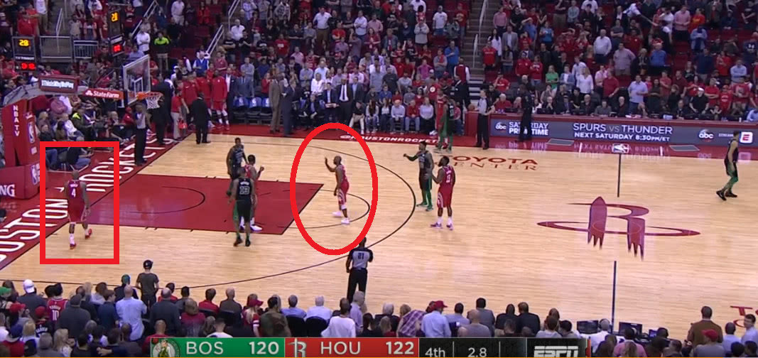 在比賽進行到最后2.8秒的時候火箭只領先綠軍2分,這也就是說什么事情都可能會發(fā)生。而在這個時候火箭發(fā)邊線球,就當火箭要發(fā)球的時候我們從上圖可以看到有6名球員在場上,而這個時候大局觀智商高超的保羅一眼就看了出來,他先是對著塔克大喊出去不過這時的塔克依舊慢慢悠悠,而這時的保羅都已經(jīng)跳了起來怒吼塔克讓其趕快出去。不得不說如果不是保羅這智商這大局觀一旦火箭發(fā)出球來那么無疑就是一個技術犯規(guī),那么最終火箭能不能取得勝利就真的不好說了。