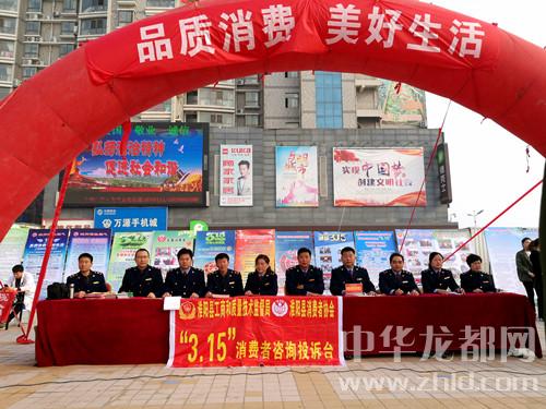 中華龍都網(wǎng)訊(周口報(bào)業(yè)全媒體記者 杜欣 文/圖)3月15日上午,淮陽(yáng)縣消費(fèi)者協(xié)會(huì)組織當(dāng)?shù)叵嚓P(guān)職能部門,在潤(rùn)德廣場(chǎng)舉辦2018年3·15國(guó)際消費(fèi)者權(quán)益日紀(jì)念大會(huì)暨大型宣傳咨詢服務(wù)活動(dòng)?;搓?yáng)縣人大副主任、縣消費(fèi)者協(xié)會(huì)會(huì)長(zhǎng)霍偉,淮陽(yáng)縣人民政府副縣長(zhǎng)薛燕等參加活動(dòng)?;顒?dòng)現(xiàn)場(chǎng),職能部門專門設(shè)立了執(zhí)法“別動(dòng)隊(duì)”,在接受消費(fèi)者現(xiàn)場(chǎng)投訴后,隨時(shí)出動(dòng)處理。