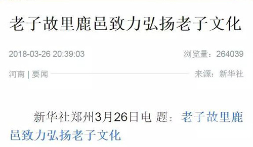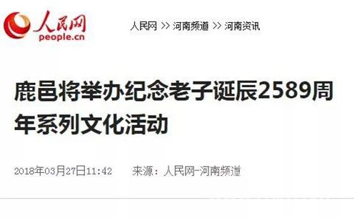 中華龍都網(wǎng)訊(周口報業(yè)全媒體記者 李瑞才 文/圖)再過幾天(本周六),就是老子誕辰2589周年了。為進一步推動老子文化與縣域建設深度融合,把老子文化這張牌打響擦亮,2016年年初鹿邑縣恢復舉辦了“老子生日拜典暨河南省非物質文化遺產展演系列活動”這一文化盛事,使得老子故里的文化感染力和影響力不斷增強。今年3月31日至4月30日(農歷二月十五日至三月十五日),鹿邑將繼續(xù)在縣城和太清宮景區(qū)舉辦2018年老子文化系列活動。連日來,新華社、人民網(wǎng)、光明網(wǎng)等中央主流媒體再次聚焦鹿邑,紛紛為老子故里這一文化旅游產業(yè)發(fā)展盛事宣傳造勢……